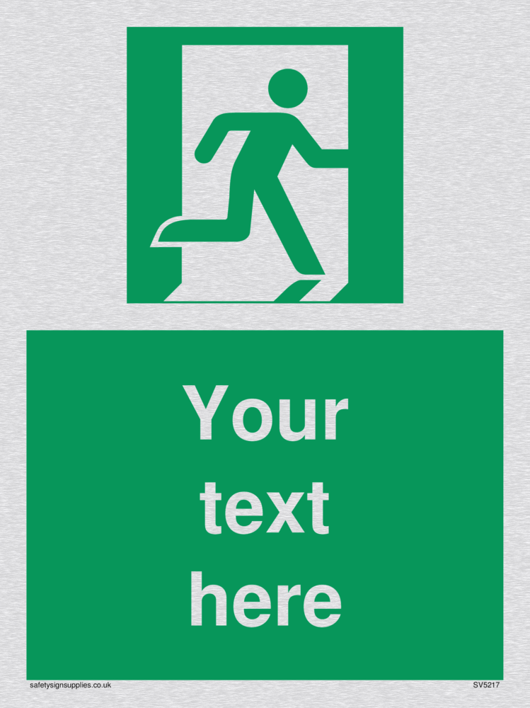 This sign contains a running man on exit facing right symbol - running person in green on exit in white. Suitable for fixing with screws. Suitable for hanging with a premium hanging kit.