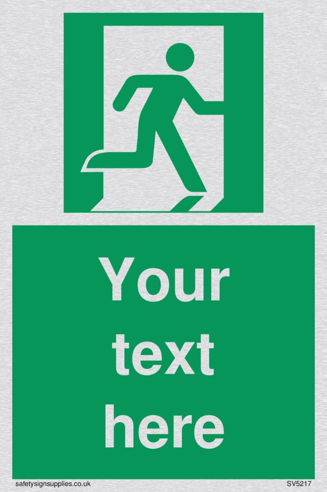 This sign contains a running man on exit facing right symbol - running person in green on exit in white. Suitable for fixing with screws. Suitable for hanging with a premium hanging kit.