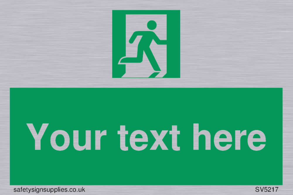 This sign contains a running man on exit facing right symbol - running person in green on exit in white. Suitable for fixing with screws. Suitable for hanging with a premium hanging kit.