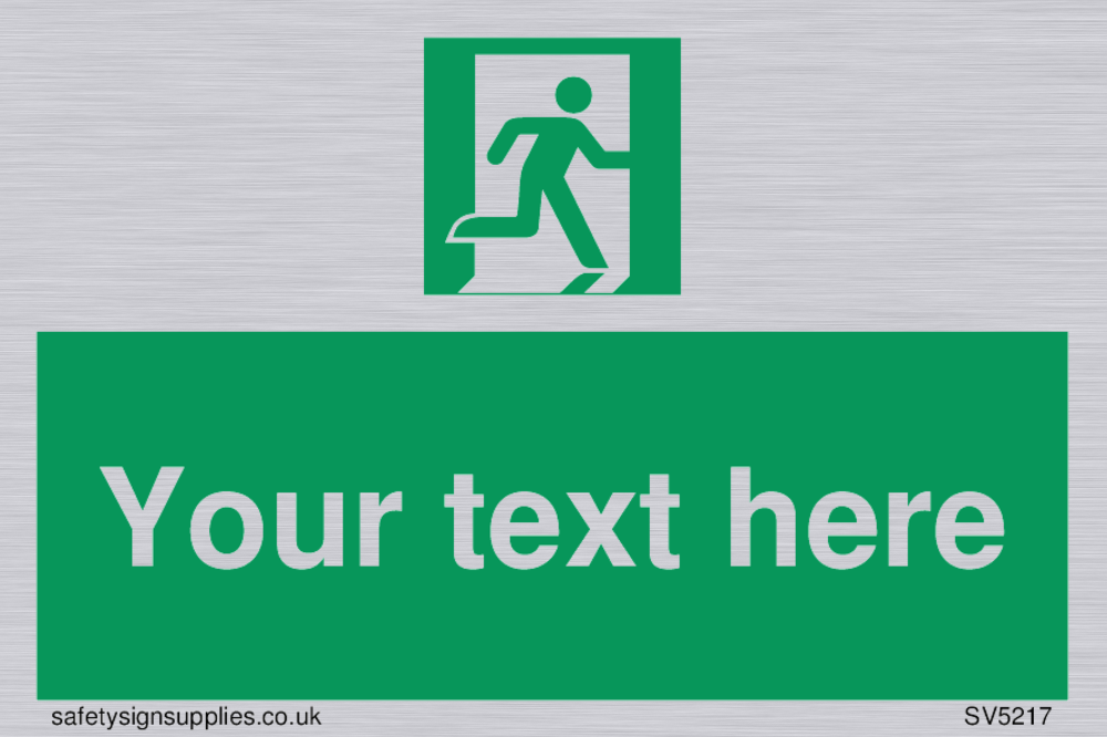 This sign contains a running man on exit facing right symbol - running person in green on exit in white. Comes with a self adhesive backing. 50mm or approximately 2" high