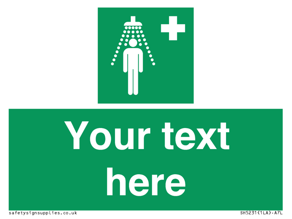 Image content: Human figure under running water coming out of a shower head, first aid cross.