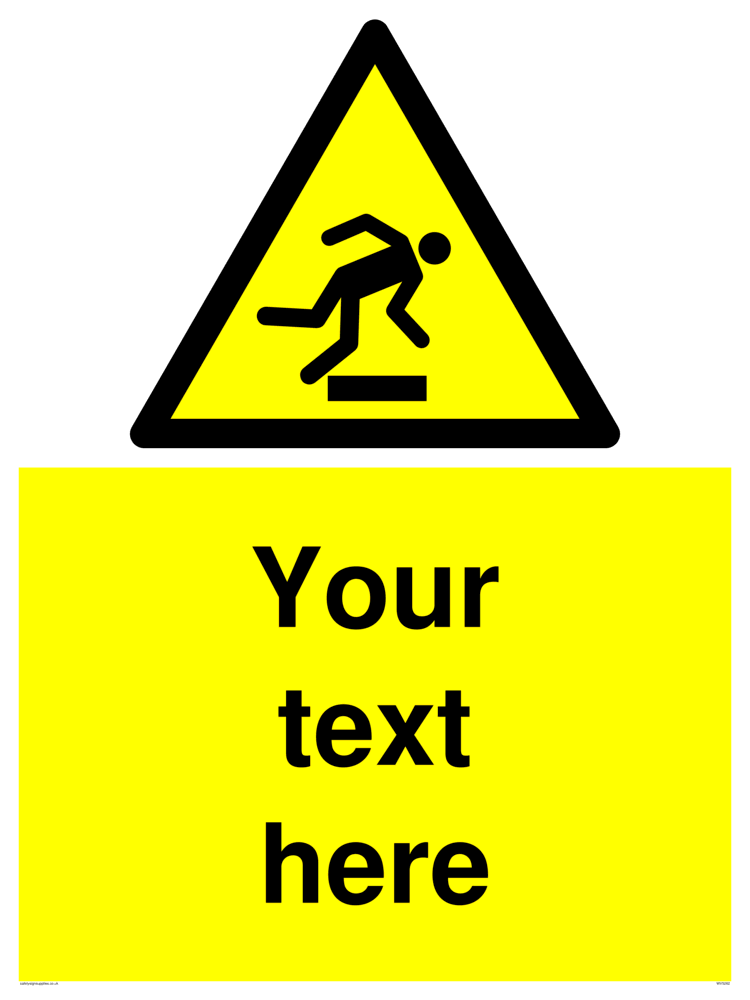This sign contains a trip hazard warning symbol. Person tripping on obstacle on the floor in black in yellow warning triangle with black border.