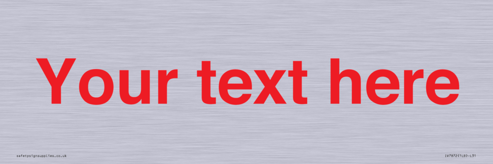 Sign Text: Your text here Dimensions: 300x100mm Material: Grained Silver Aluminium Text Colour: red Background Colour: White Thickness / Depth: 0.7mm More...