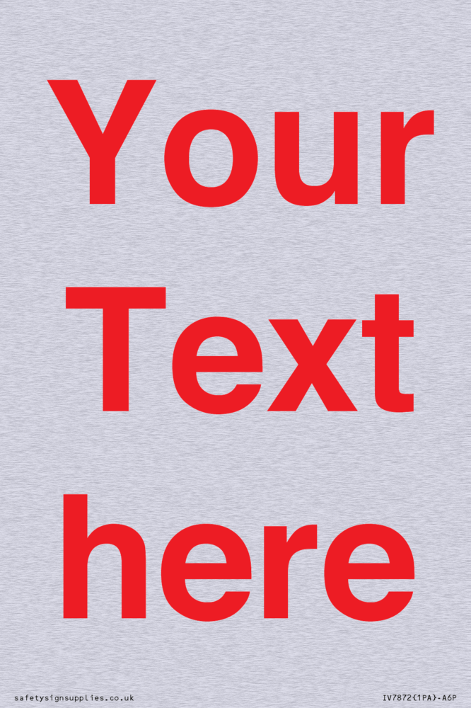 Suitable for mounting on a flat surface. Suitable for mounting on a door. Custom signs contain the text required by the customer. With your your text and a standard safety sign symbol - a bespoke sign can fit any requirement. Signs in this range are from our maximum choice range. Giving you the most choice of signs available in the UK. Signs in this range are from our standard range.