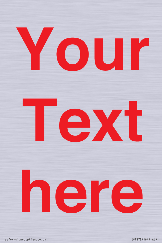 Suitable for mounting on a metallic surface. Suitable for hanging installation. Suitable for mounting on a flat surface. Suitable for mounting on a door. Custom signs contain the text required by the customer. With your your text and a standard safety sign symbol - a bespoke sign can fit any requirement.