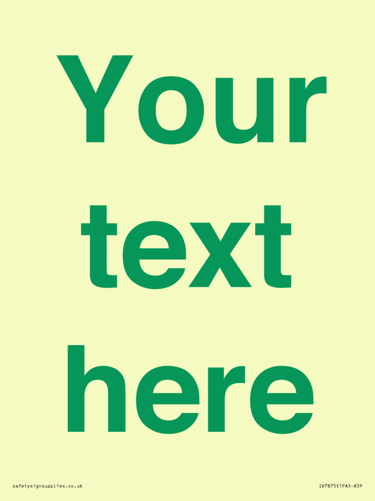 Suitable for mounting on a flat surface. Suitable for mounting on a door. Suitable for mounting on cladding. This product is design to be mounted on the ceiling. Custom signs contain the text required by the customer. With your your text and a standard safety sign symbol - a bespoke sign can fit any requirement.