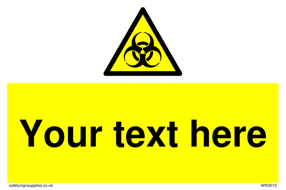 This sign contains a international standard biological hazard symbol. A plain trefoil, which has three circles overlapping each other equally in black on a yellow warning triangle with a black border.