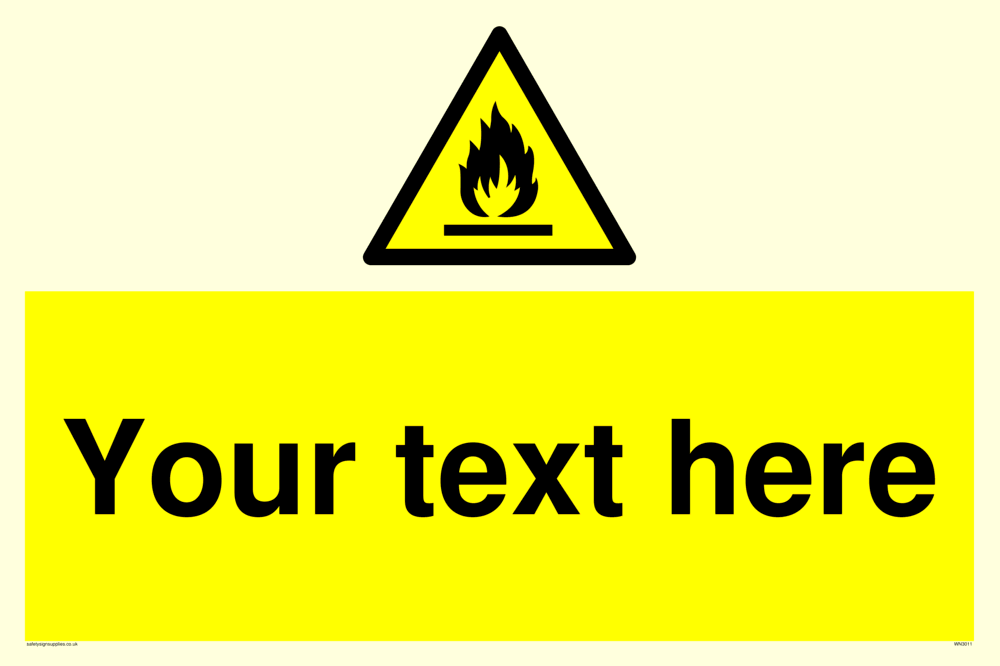 Custom signs contain the text required by the customer. With your your text and a standard safety sign symbol - a bespoke sign can fit any requirement.
