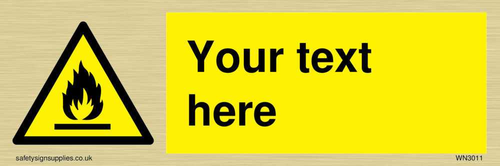 This sign contains an international standard flammable symbol, Flat bar with flames in black.