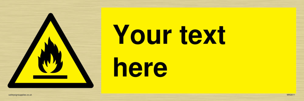 This sign contains an international standard flammable symbol, Flat bar with flames in black.