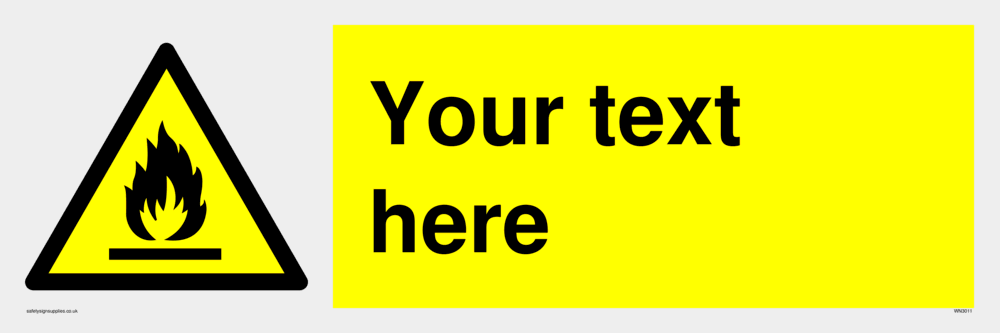 Custom signs contain the text required by the customer. With your your text and a standard safety sign symbol - a bespoke sign can fit any requirement.