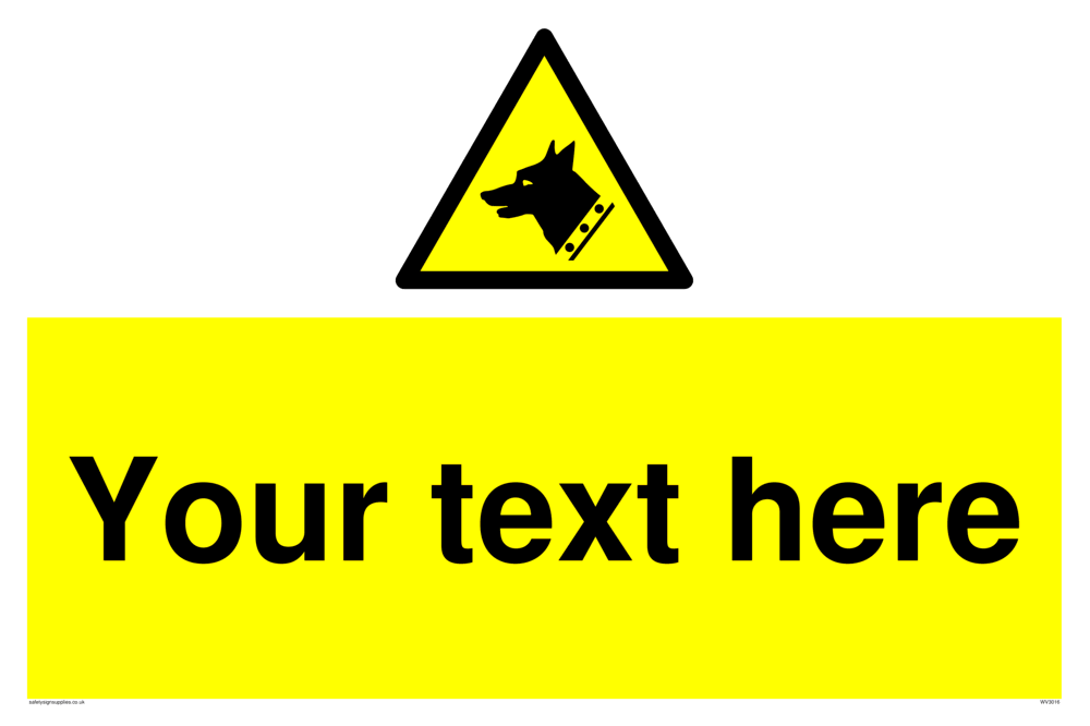 Dog signs contain instructions or rules relating to dogs. Custom signs contain the text required by the customer. With your your text and a standard safety sign symbol - a bespoke sign can fit any requirement. This sign is large.