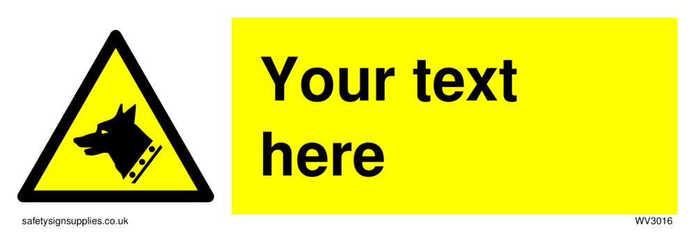 Dog signs contain instructions or rules relating to dogs. Custom signs contain the text required by the customer. With your your text and a standard safety sign symbol - a bespoke sign can fit any requirement. This sign is extra small. Signs in this range are from our standard range.