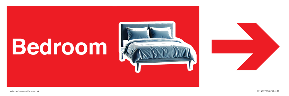 Bedroom dementia friendly directional with arrow Red Background