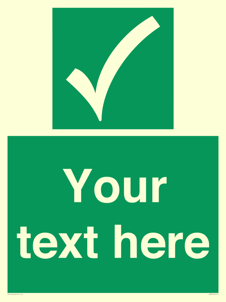 Custom safe condition safety sign with safe condition tick in white on a green background.