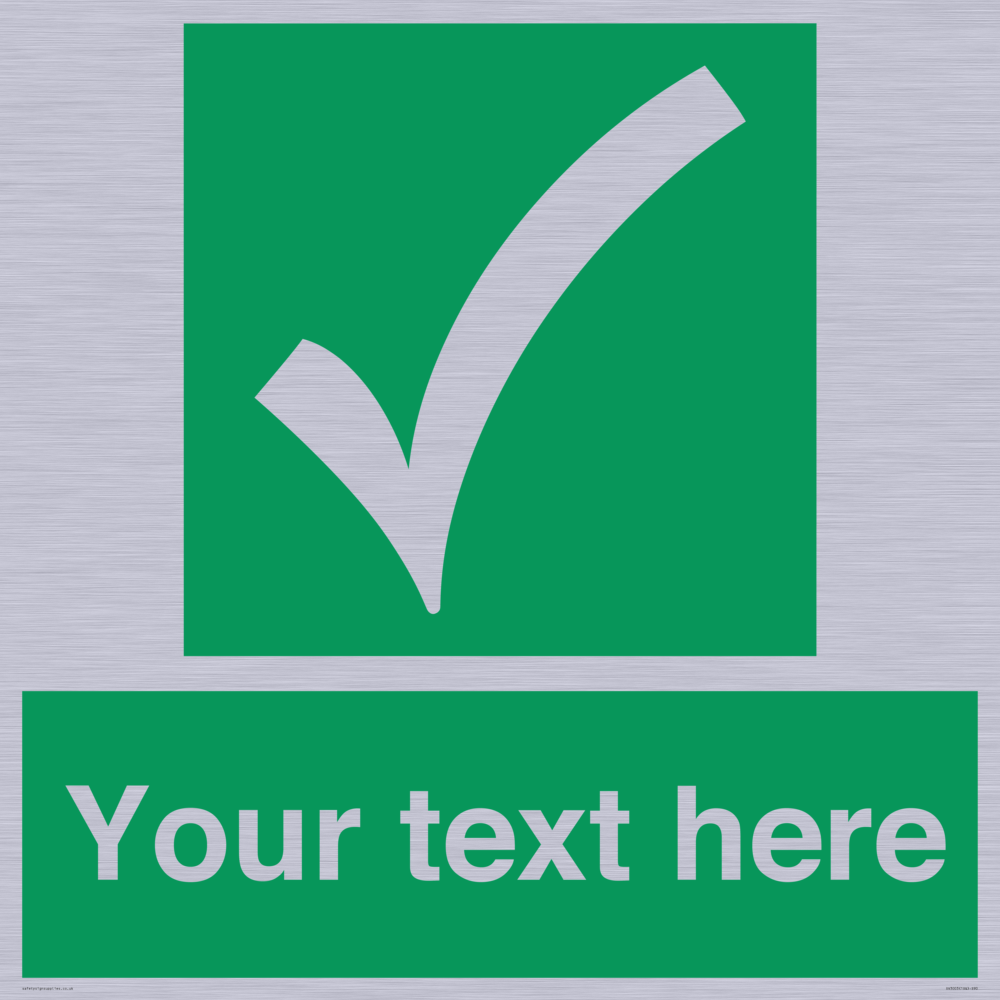 Custom safe condition safety sign with safe condition tick in white on a green background.