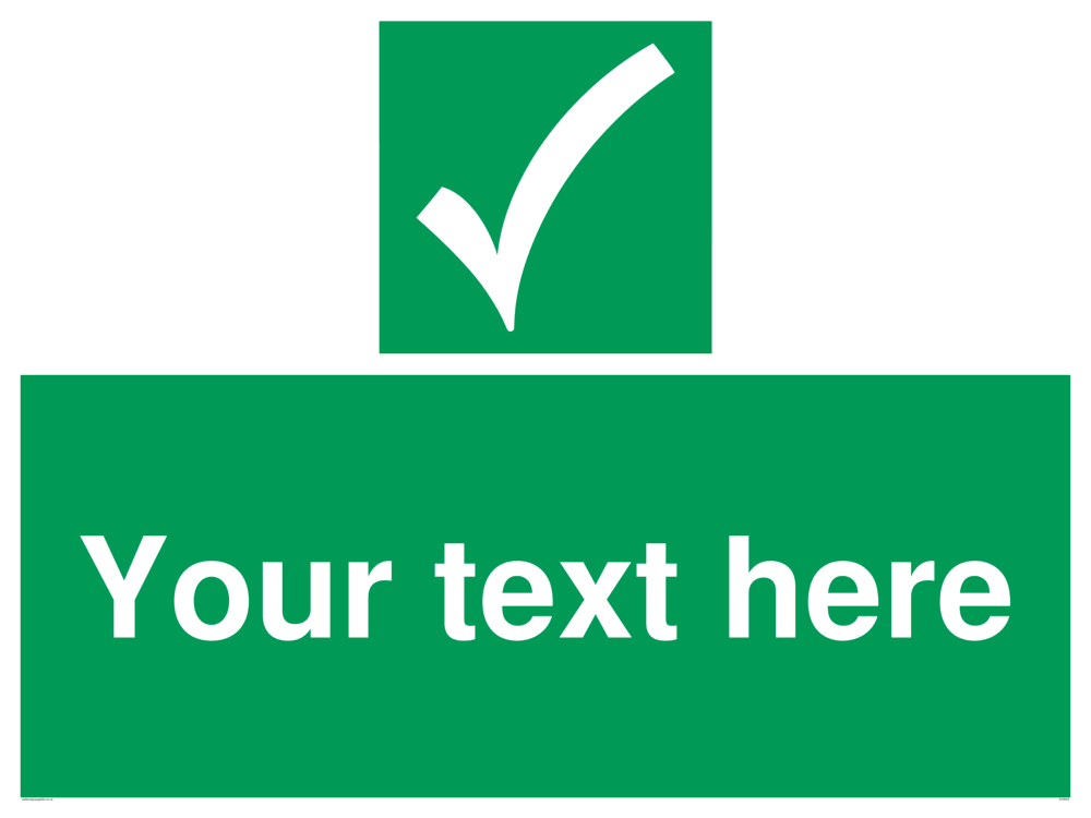 Custom safe condition safety sign with safe condition tick in white on a green background.
