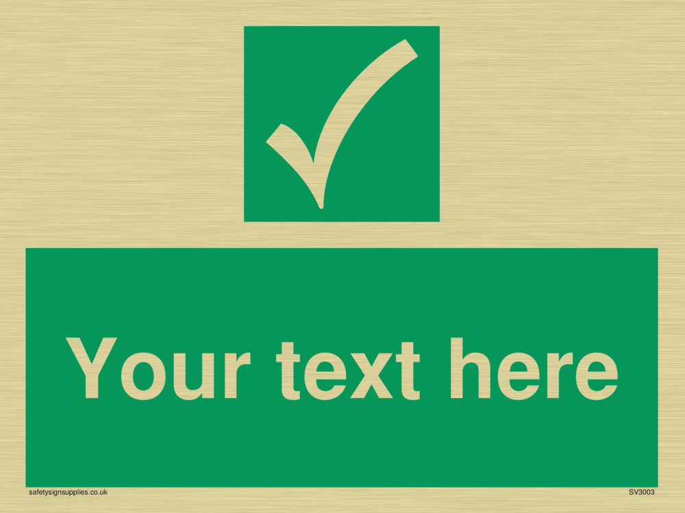 Custom safe condition safety sign with safe condition tick in white on a green background.