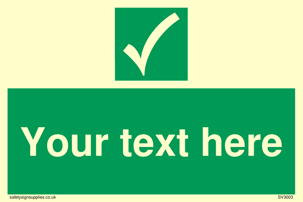 This sign contains a general Safe Condition Symbol - white tick on green background.