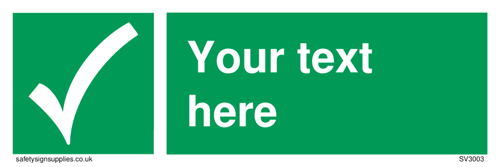 This sign contains a general Safe Condition Symbol - white tick on green background.
