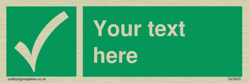 Custom safe condition safety sign with safe condition tick in white on a green background.