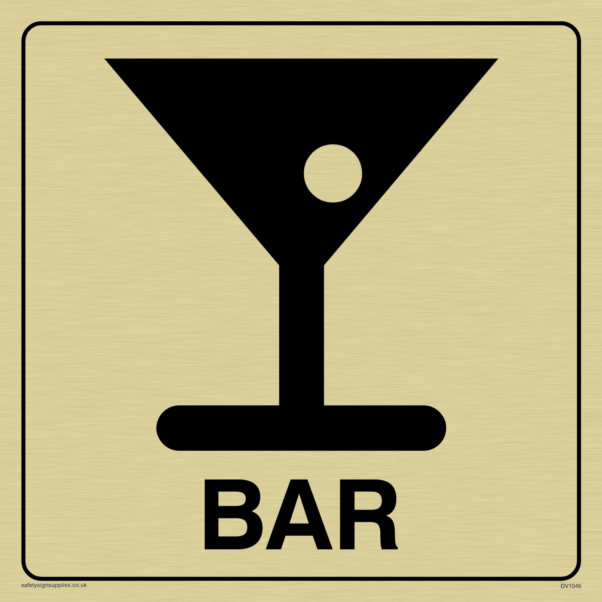 The background of this sign is the colour of the base material. This sign contains a bar symbol. Cocktail glass with olive. Comes with a self adhesive backing.