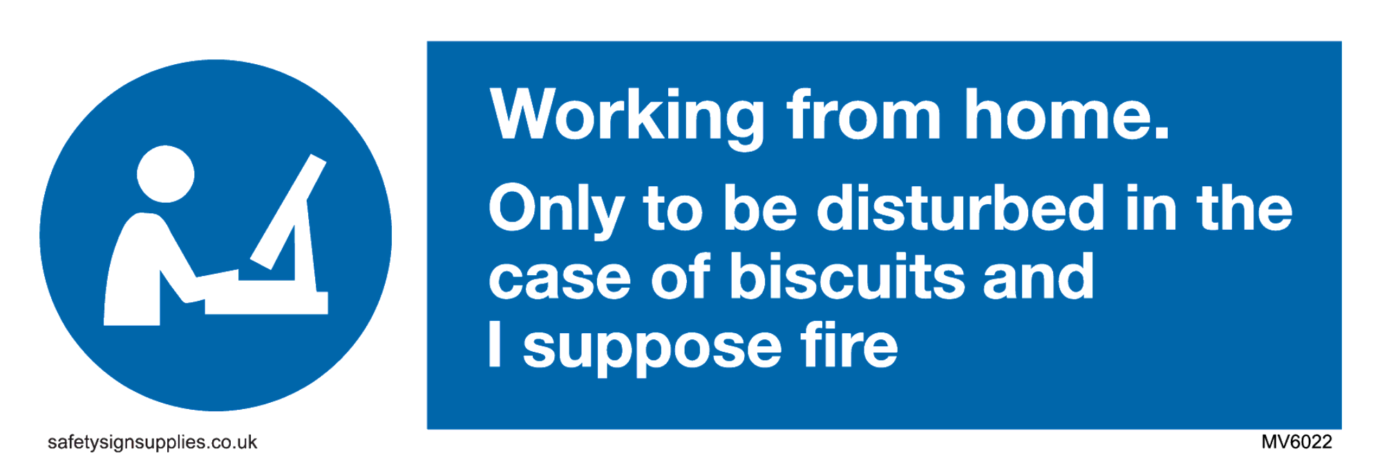 Sign Text: Working from home. Only to be disturbed in the case of biscuits and I suppose fire