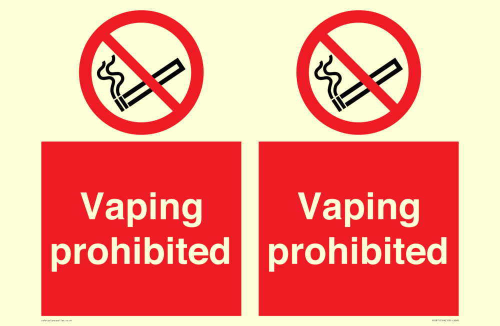 Sign Text: Vaping prohibited e-cigarette no smoking