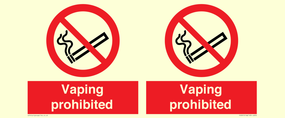 Sign Text: Vaping prohibited e-cigarette no smoking