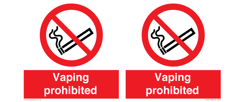 Sign Text: Vaping prohibited e-cigarette no smoking