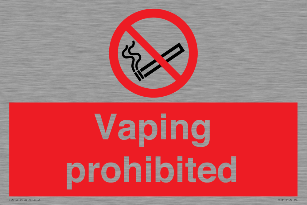 Sign Text: Vaping prohibited e-cigarette no smoking