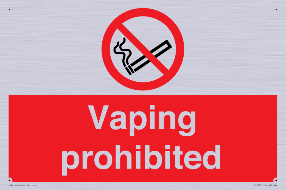 Sign Text: Vaping prohibited e-cigarette no smoking