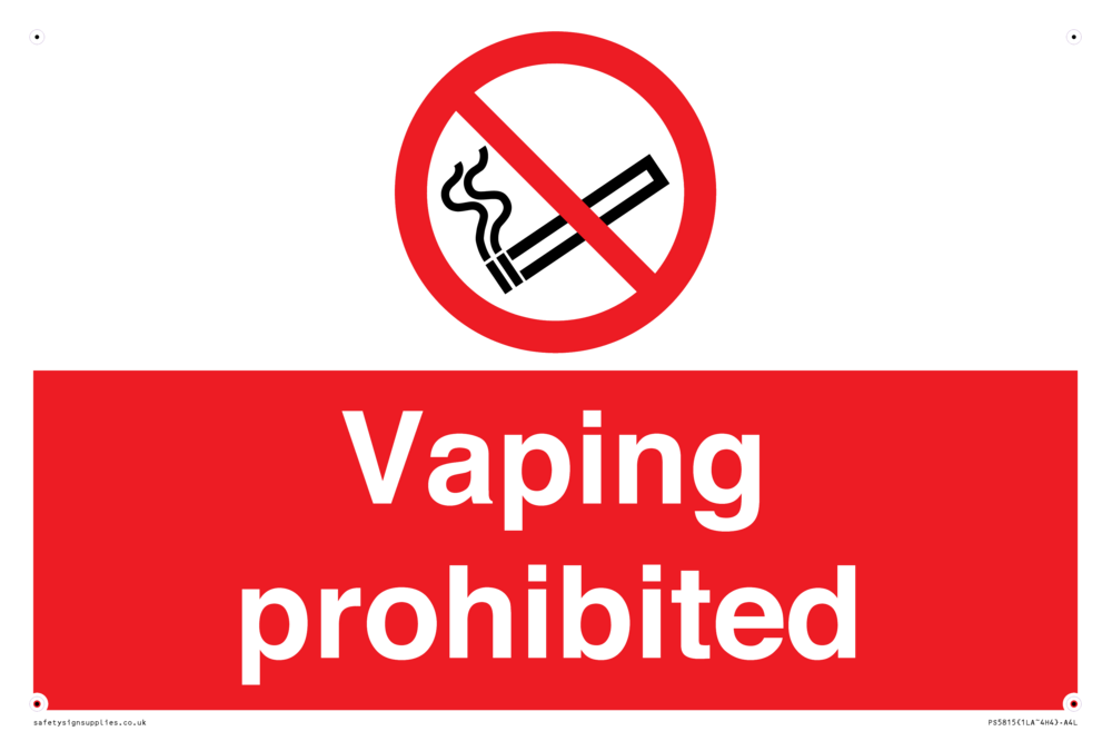 Sign Text: Vaping prohibited e-cigarette no smoking