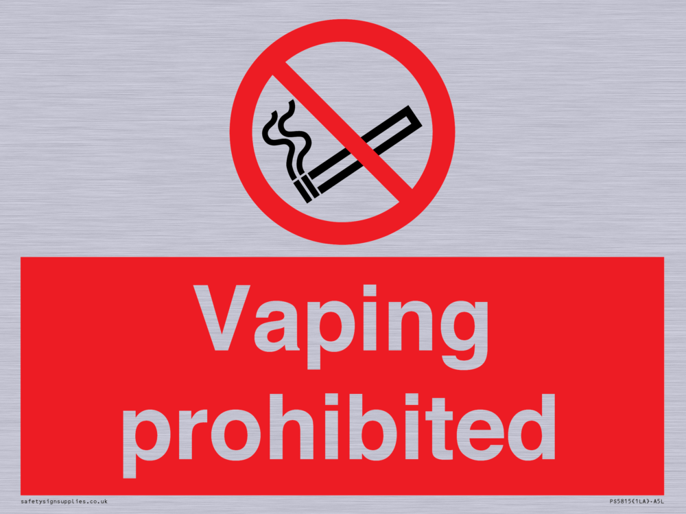 Sign Text: Vaping prohibited e-cigarette no smoking