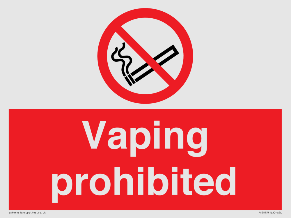 Sign Text: Vaping prohibited e-cigarette no smoking