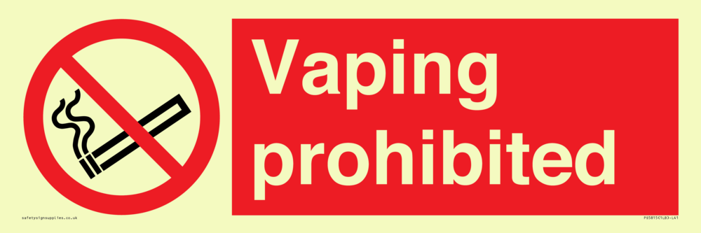 Sign Text: Vaping prohibited e-cigarette no smoking