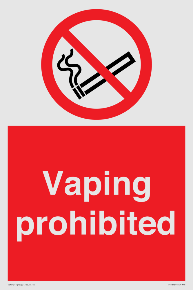 Sign Text: Vaping prohibited e-cigarette no smoking