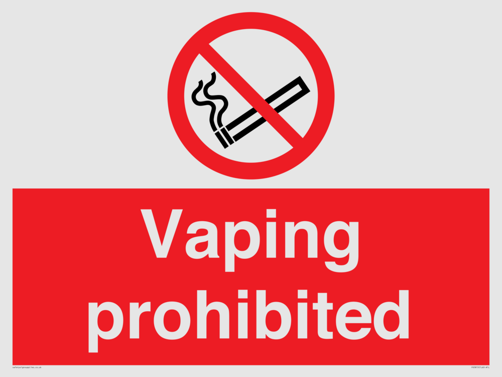 Sign Text: Vaping prohibited e-cigarette no smoking