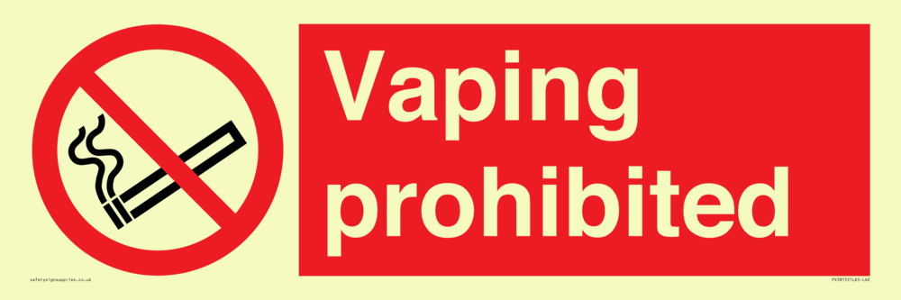 Sign Text: Vaping prohibited e-cigarette no smoking