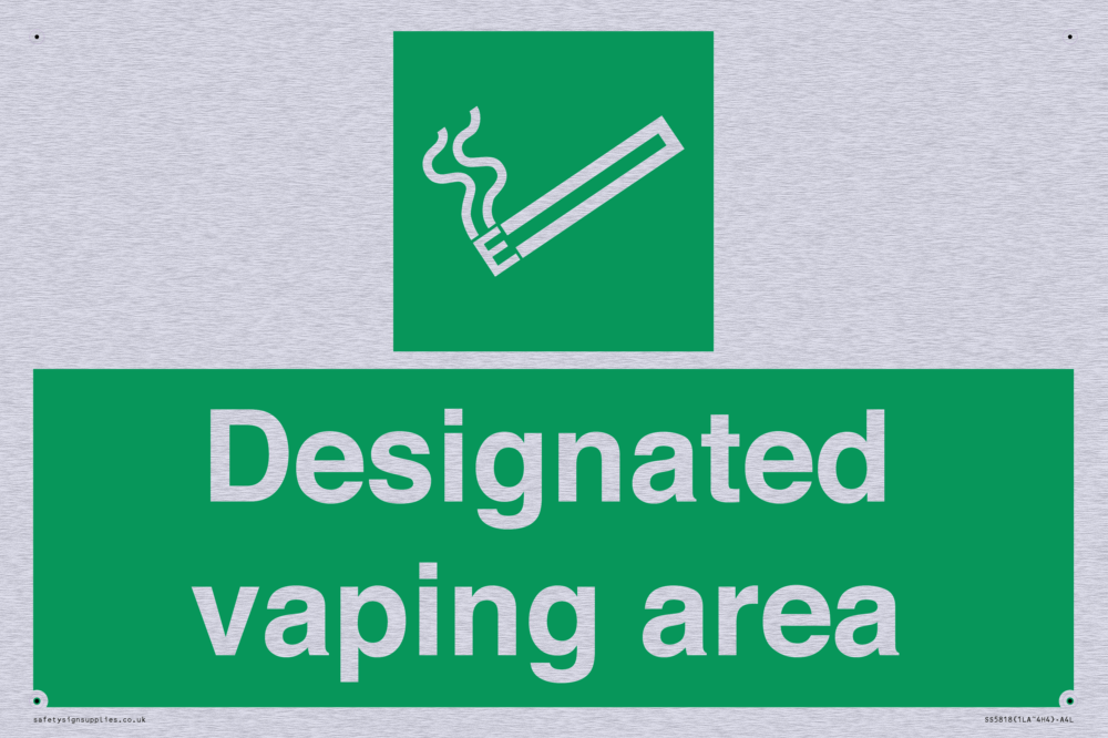 Sign Text: Designated vaping area e-cigarettes allowed