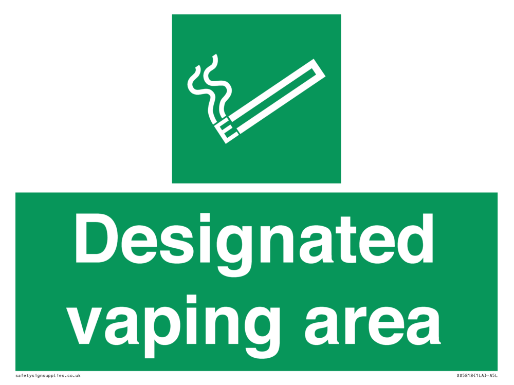 Sign Text: Designated vaping area e-cigarettes allowed