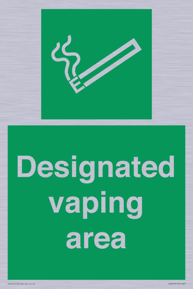 Sign Text: Designated vaping area e-cigarettes allowed