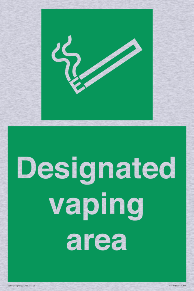 Sign Text: Designated vaping area e-cigarettes allowed