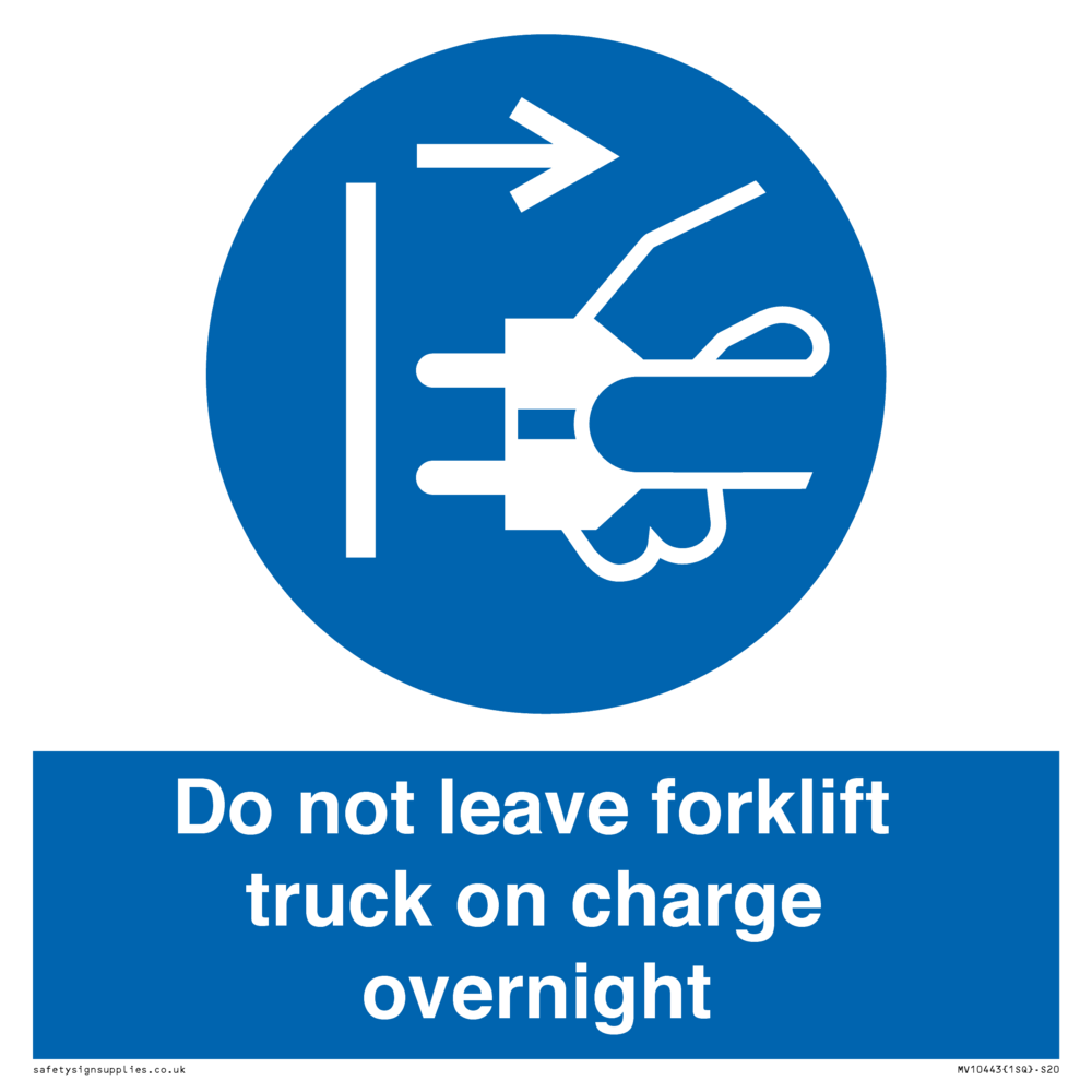 Do not leave forklift truck on charge overnight Sign