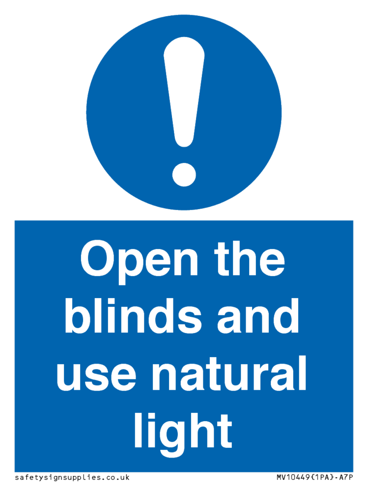 Open the blinds and use natural light Sign