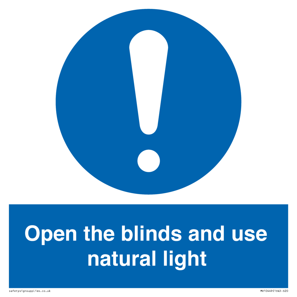 Sign Text: Open the blinds and use natural light