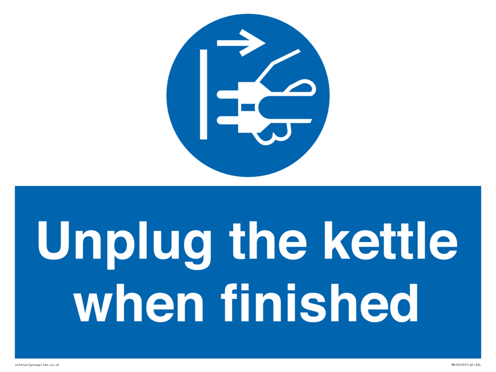 Sign Text: Unplug the kettle when finished