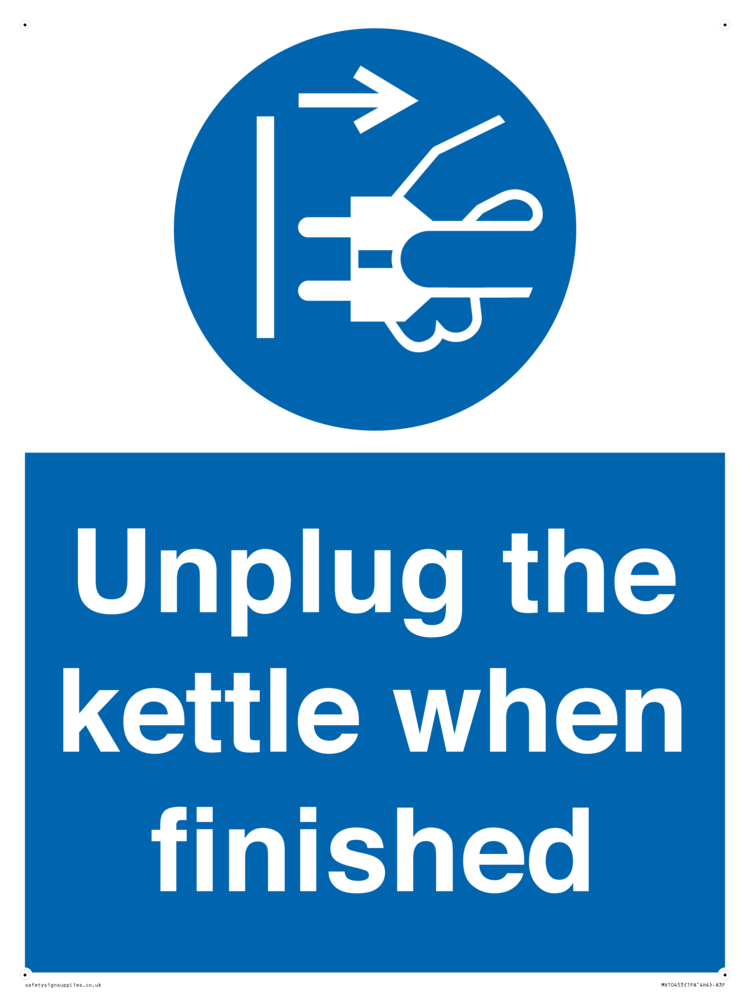 Function: To signify that the mains plug must be disconnected from electrical outlet for the purposes of maintenance of electrical equipment, in the case of malfunction or when left unattended.