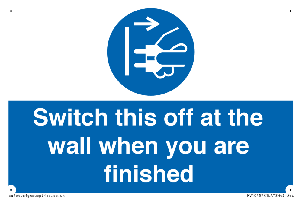 Switch this off at the wall when you are finished Sign