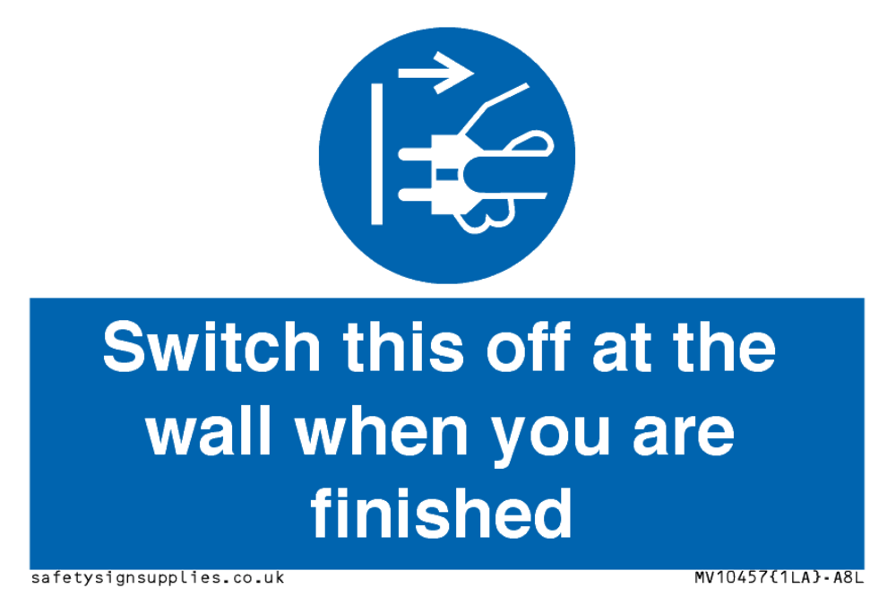 Switch this off at the wall when you are finished Sign